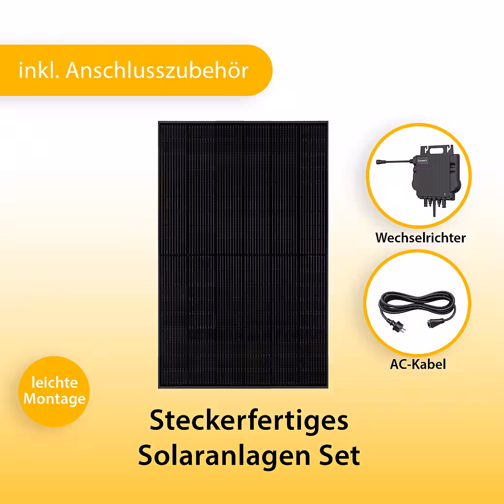 Mounting brackets and storage units are available separately. The modules are compatible with many common systems. Connection to the power grid must be carried out by a qualified electrician. Photovoltaic systems with a feed-in capacity of up to 800 W do not require a permit, but must be registered with the Federal Network Agency (Market Master Data Register). This offer is subject to the 0% VAT rate according to §12 para. 3 of the German VAT Act (valid from January 1, 2023).