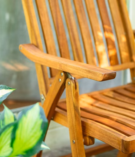 If you are the proud owner of a small outdoor area such as a narrow balcony, garden plot or similar, collapsible furniture can be a good choice. So it is very convenient that you are just discovering the Lima folding chair, which is attractive in well-known brand quality. This small and fine product convinces with its robust construction made of enormously resistant FSC-certified® acacia wood. In addition, the Lima folding chair from Dehner scores with a maximum load capacity of approx. 160 kg. Even heavyweight warriors can take a seat there carefree and enjoy a cup of coffee or a cup of tea.