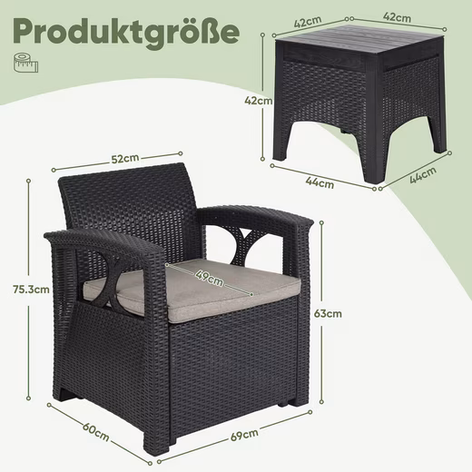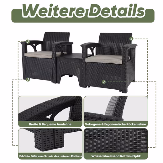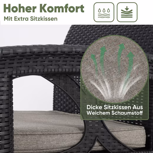 • PE Rattan Material: Highly weather-resistant and durable compared to traditional rattan. This keeps your garden furniture robust and durable even in rain and wind.