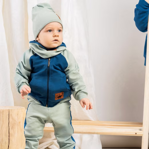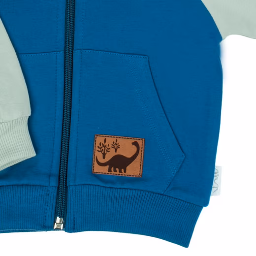 This comfortable boys’ jacket made of high-quality, two-tone cotton with 5% elastane offers maximum comfort. Knitted cuffs on the sleeves, neck, and waist ensure a perfect fit and make it easy to put on and take off. Two practical pockets with a cool dinosaur appliqué and a full-length zipper give the jacket its sporty look. Perfect for active kids!