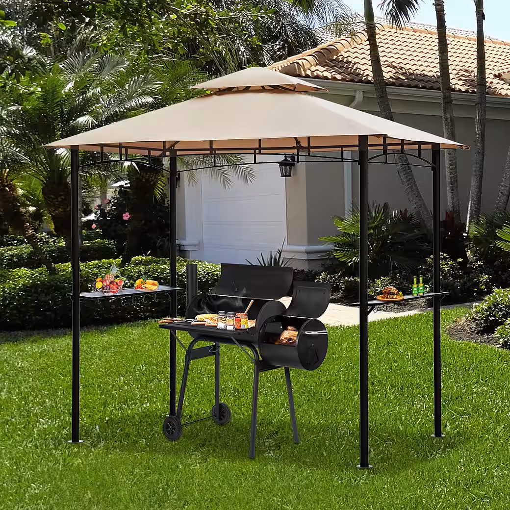 • Sturdy frame: The grill tent has a robust steel frame that is rust-resistant and powder-coated. Eight roof struts provide additional stability and load-bearing capacity.