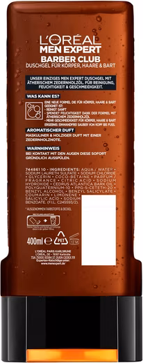 The Barber Club Shower Gel from L’Oréal Paris Men Expert is ideal for both the body and the hair and beard. This cleansing wash gel is specially designed for men aged 25 and over and provides intensive cleansing. At the same time, it nourishes and leaves the skin feeling pleasant and hair radiantly beautiful. The organic and essential cedarwood oil provides an indulgent scent, making every shower a truly pampering experience. Men of all skin types are well-advised to use the cleansing care of the Barber Club Shower Gel, as the gentle formula is extremely well-tolerated. The wash gel is also rich, making it sufficient for weeks of showering.
