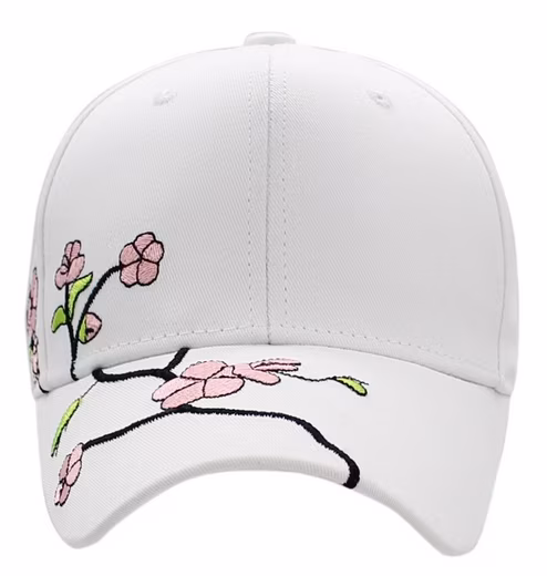 Women’s baseball cap in various colors with delicate cherry blossom embroidery, perfect for the summer look