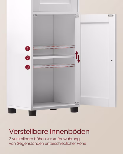 - More stability, fewer worries: This bathroom cabinet is made of high-quality chipboard and has good stability, which is further increased by the included anti-tip device.