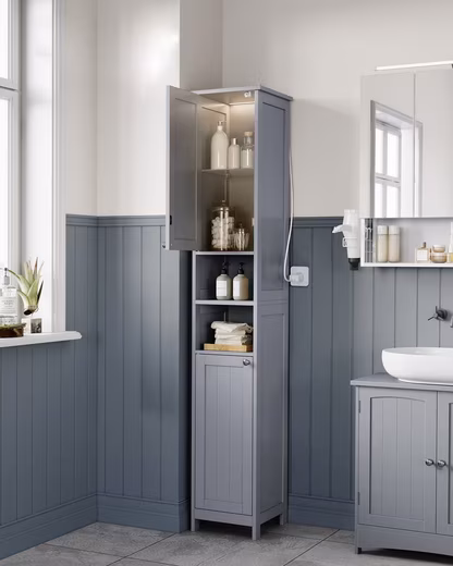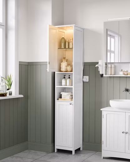 - This tall bathroom cabinet is made of high-quality, lacquered MDF and can be easily kept clean.