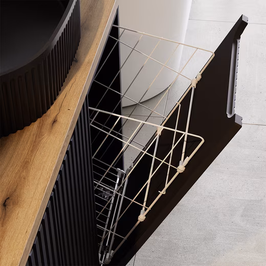 Bathroom furniture set in black and oak, grooved front, NEWPORT-56-BLACK