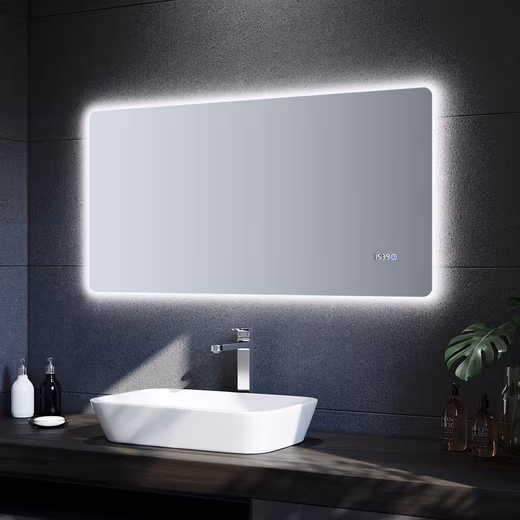 SONNI LED Bathroom Mirror with LED Clock Temperature Display – 120cm x 60cm – Cool White