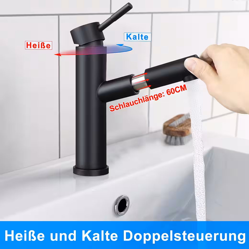 [Extendable Washbasin Faucet]  The ZMH washbasin faucet has a pull-out spray head that extends up to 60cm, offering absolute flexibility and making it easy to clean your washbasin or comfortably wash your hair, providing agility for all your needs.