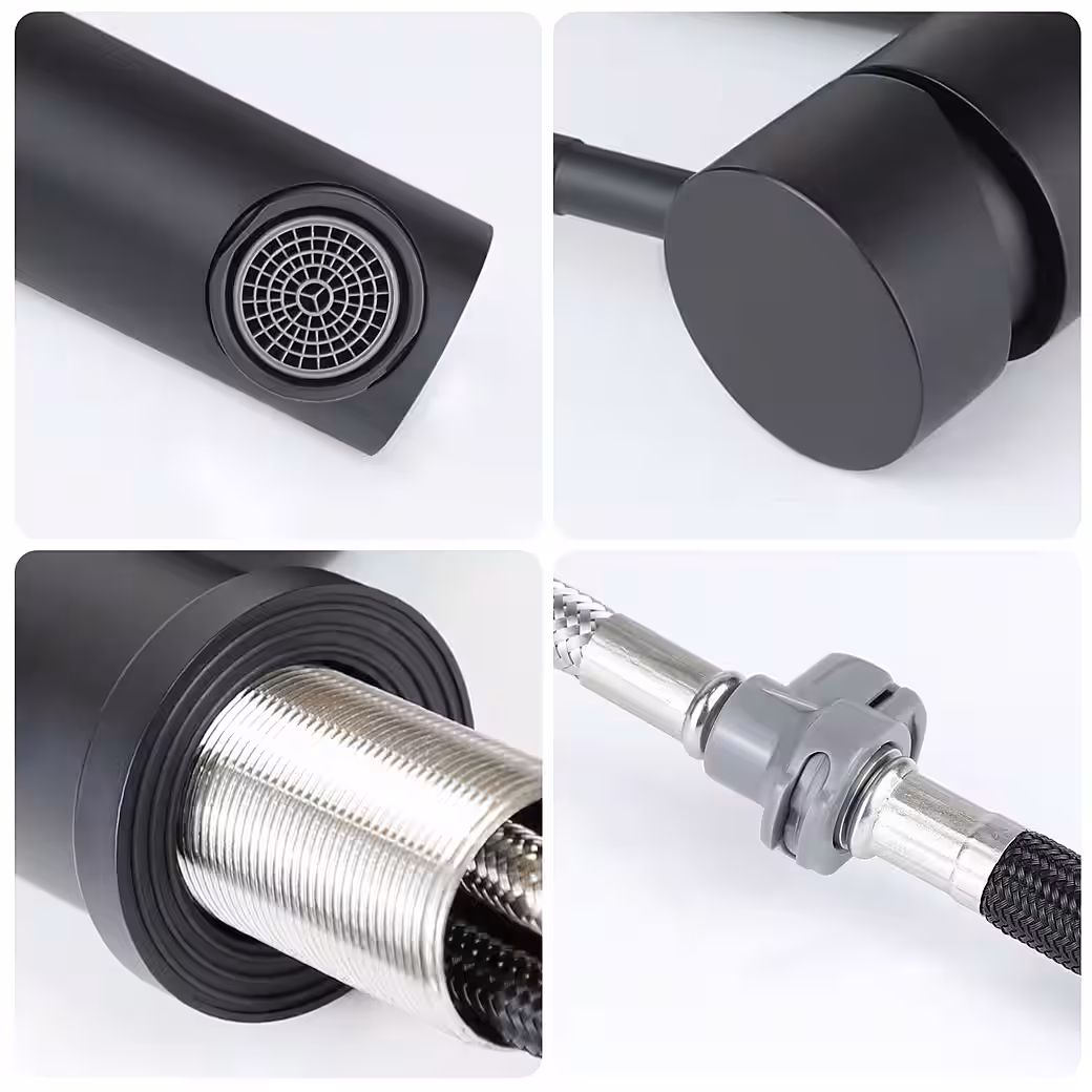 [Single-lever mixer]  Single-lever mixer design for effortless flow and temperature control. Easily adjust water flow or hot/cold water. Standard 3/8-inch connection for easy installation. High-temperature resistant hose.