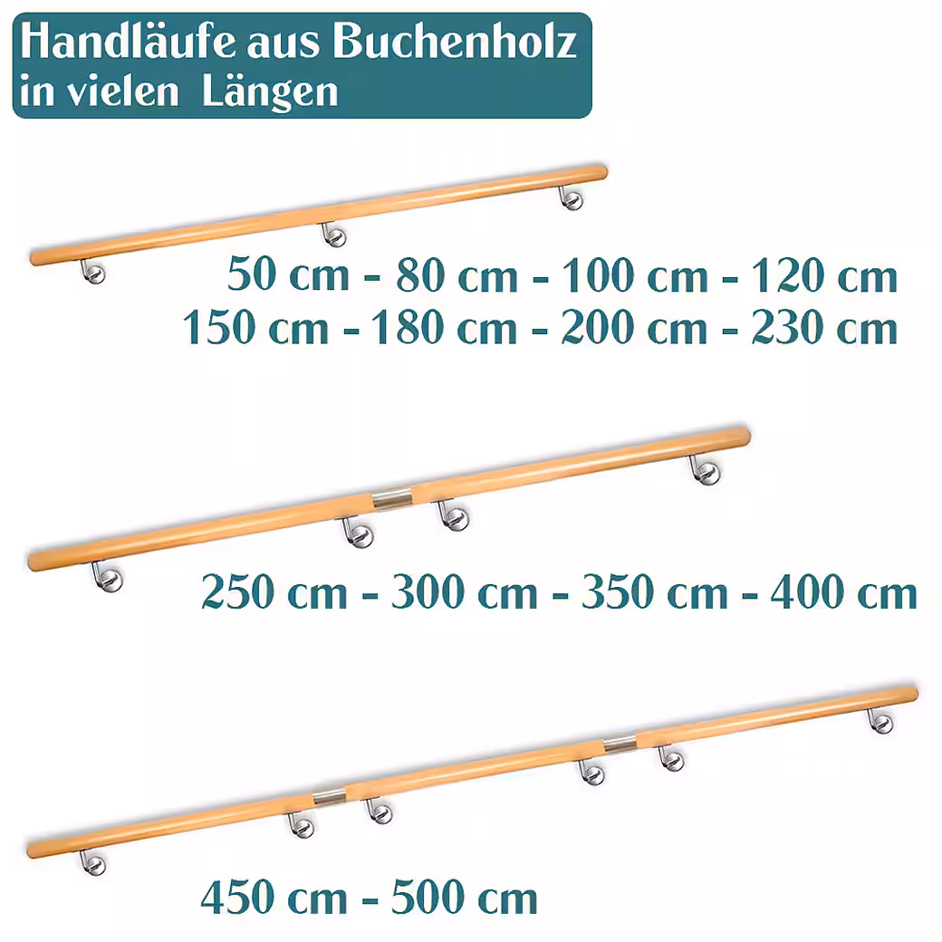 Beech wood handrail, stair railing, wall-mounted handrail for stairs, 50 – 500 cm