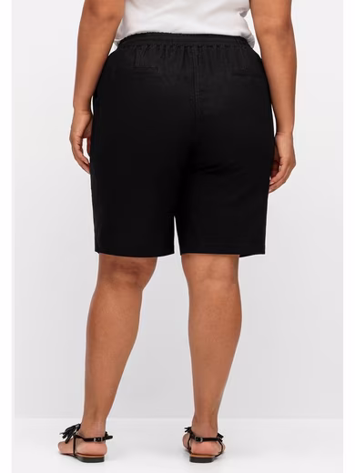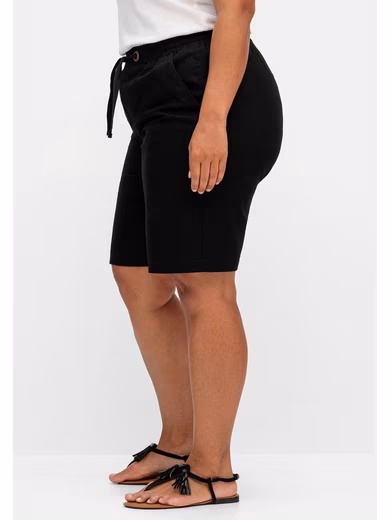 The sheego Bermuda shorts have a pleasantly wide cut and a comfortable fit thanks to the elastic waistband. Eyelets and a tie add a sporty touch. Side pockets and back welt pockets complete the summery look.