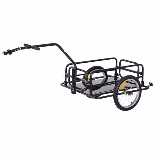 It’s incredibly easy with the HOMCOM cargo trailer. The universal hitch fits almost any bicycle and is quick to attach and detach. The robust steel frame allows for a load of up to 36 kg. Thanks to the 16-inch tires, the trailer remains easy to pull even when fully loaded, and the rim reflectors ensure better visibility.