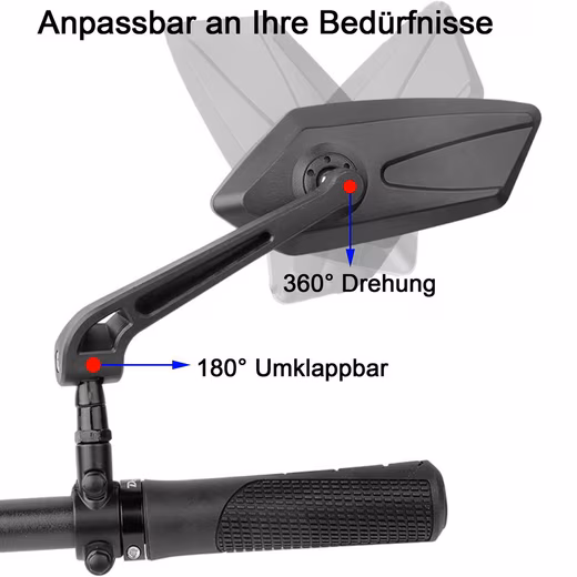 - Before you begin your ride, please adjust the angle of the folding bicycle rearview mirror to your needs. Do not adjust the lens while riding to avoid danger.