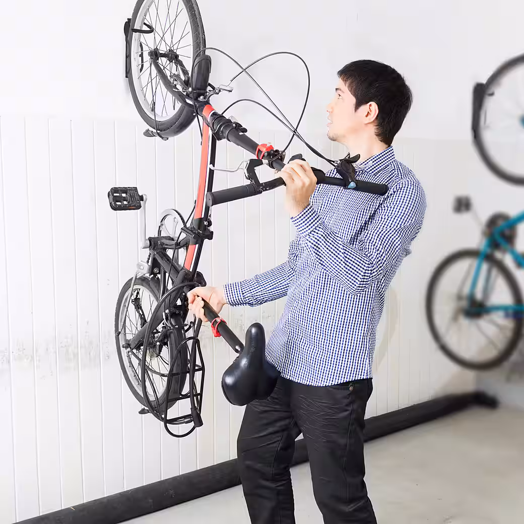 Simply attach the two hooks at your desired height and hang your bikes. Thanks to its robust construction, the rack can easily hold even heavier bicycles.Â