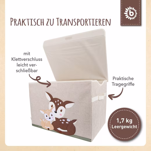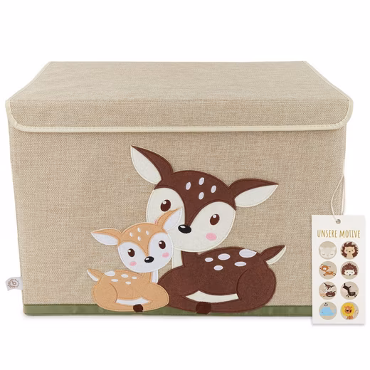 Perfect for children: This foldable and easily storable storage box with a hinged lid is ideal for toys. The design with reclining deer stimulates the imagination.
