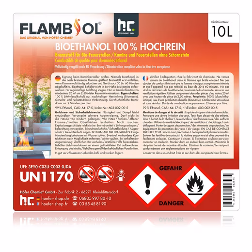 Bioethanol 10 L FLAMBIOLĀ® Bioethanol 100% High Purity 10 l, (1-pc)