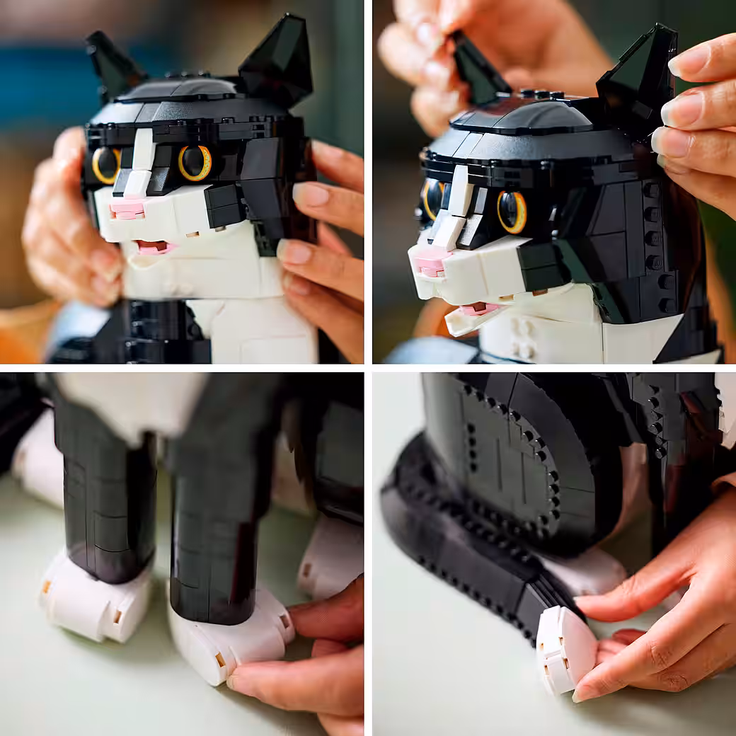 - Lifelike and playful model of a black and white cat made from LEGO® bricks – With 1710 pieces