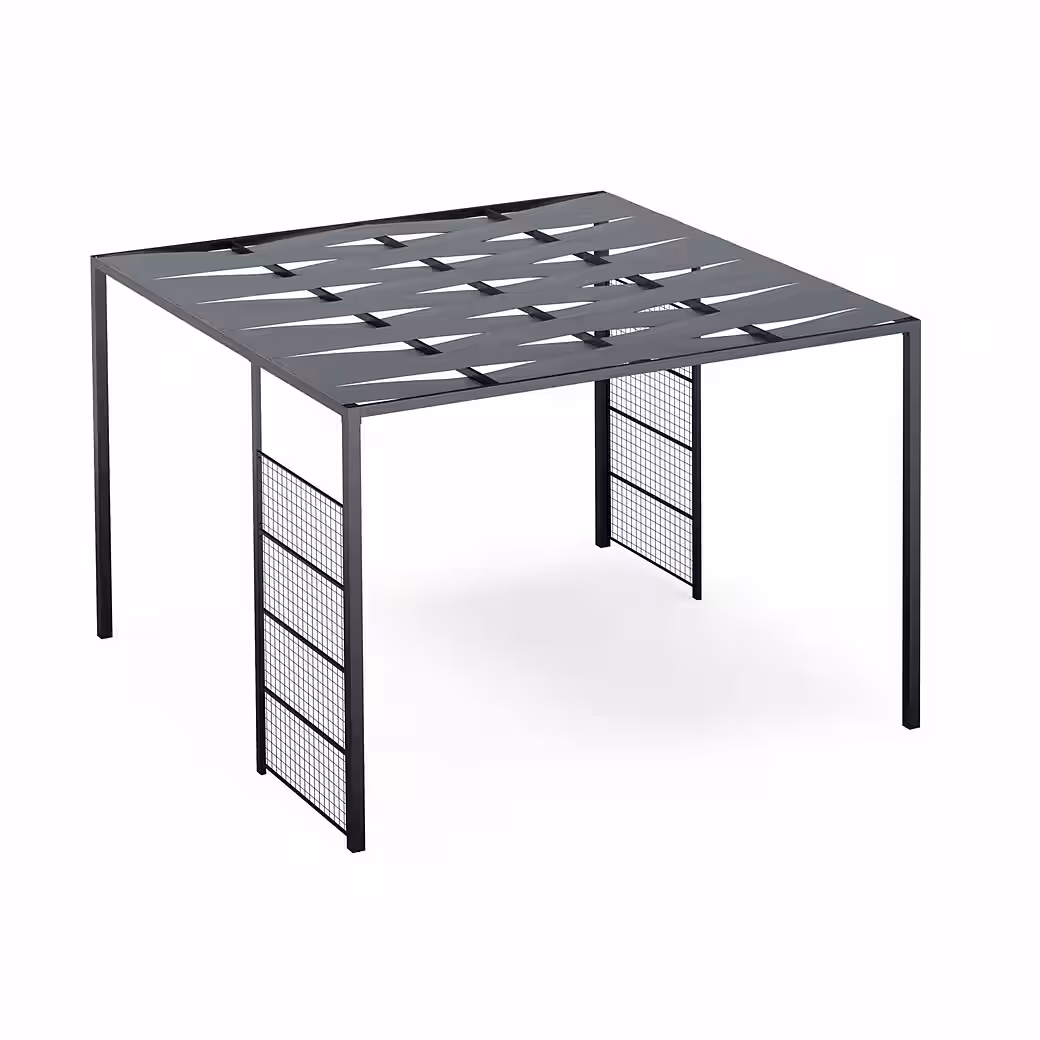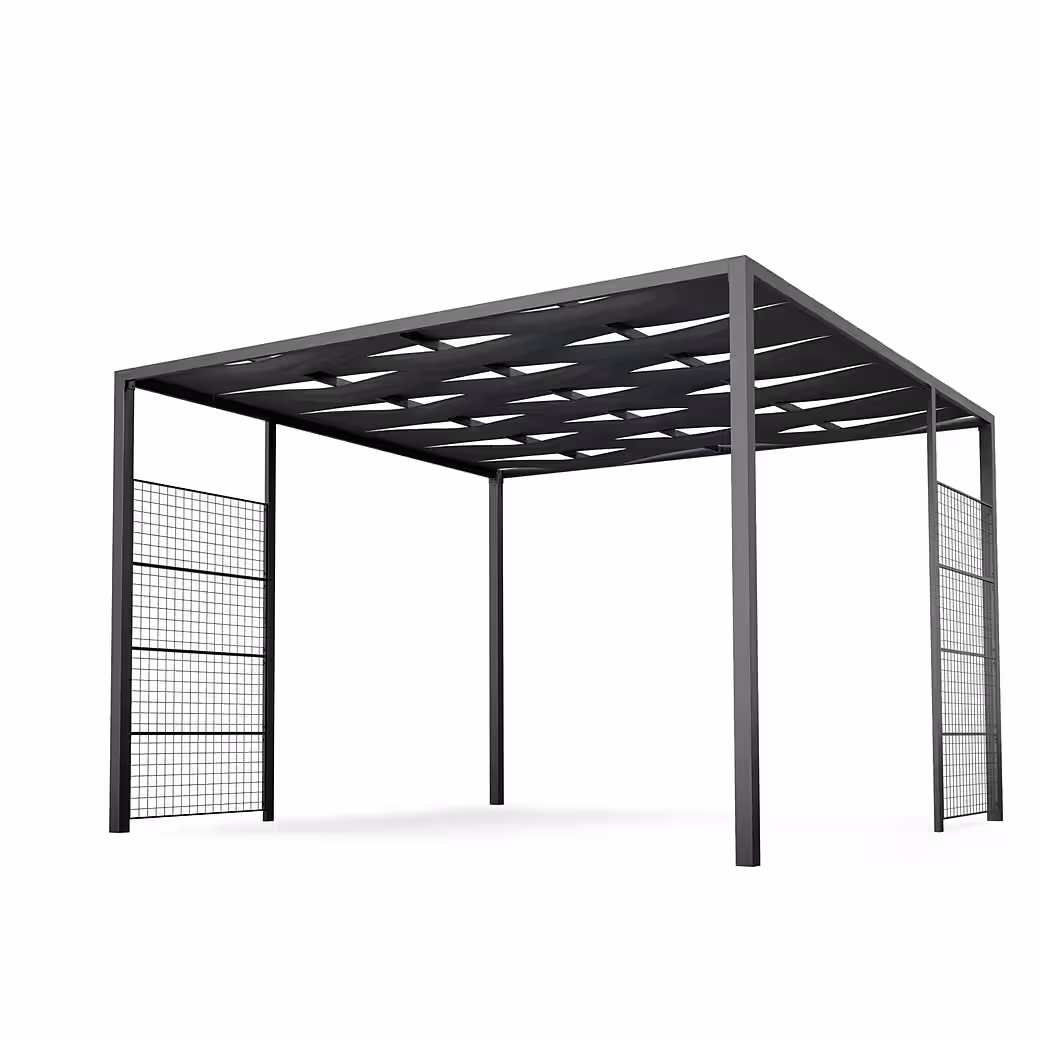 - Integrated trellis wall: The pergola is equipped with an integrated wall trellis made of steel cables, which provides additional privacy and
