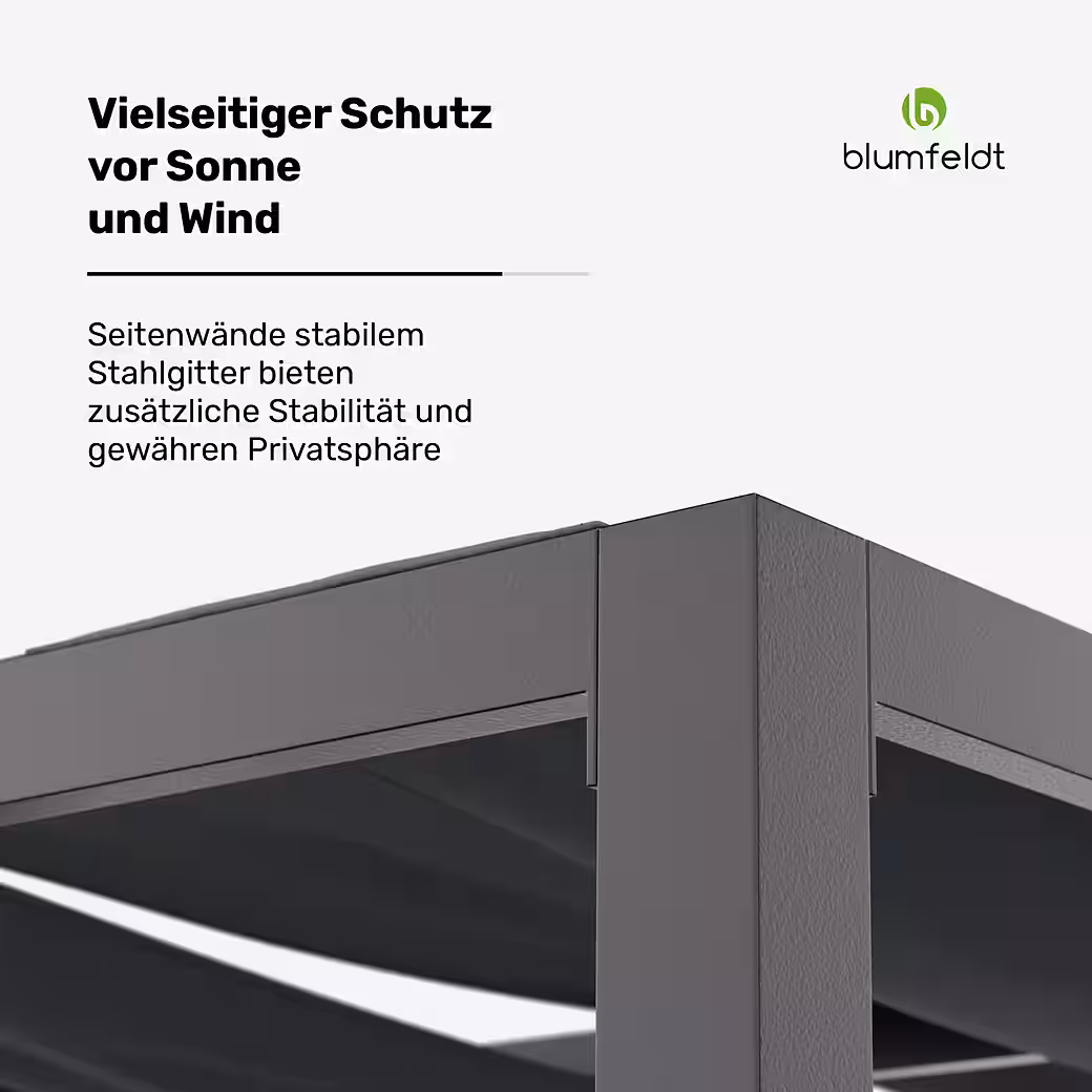 - Stable and durable: The pergola has a robust, powder-coated steel frame, which ensures exceptional stability and durability, so that