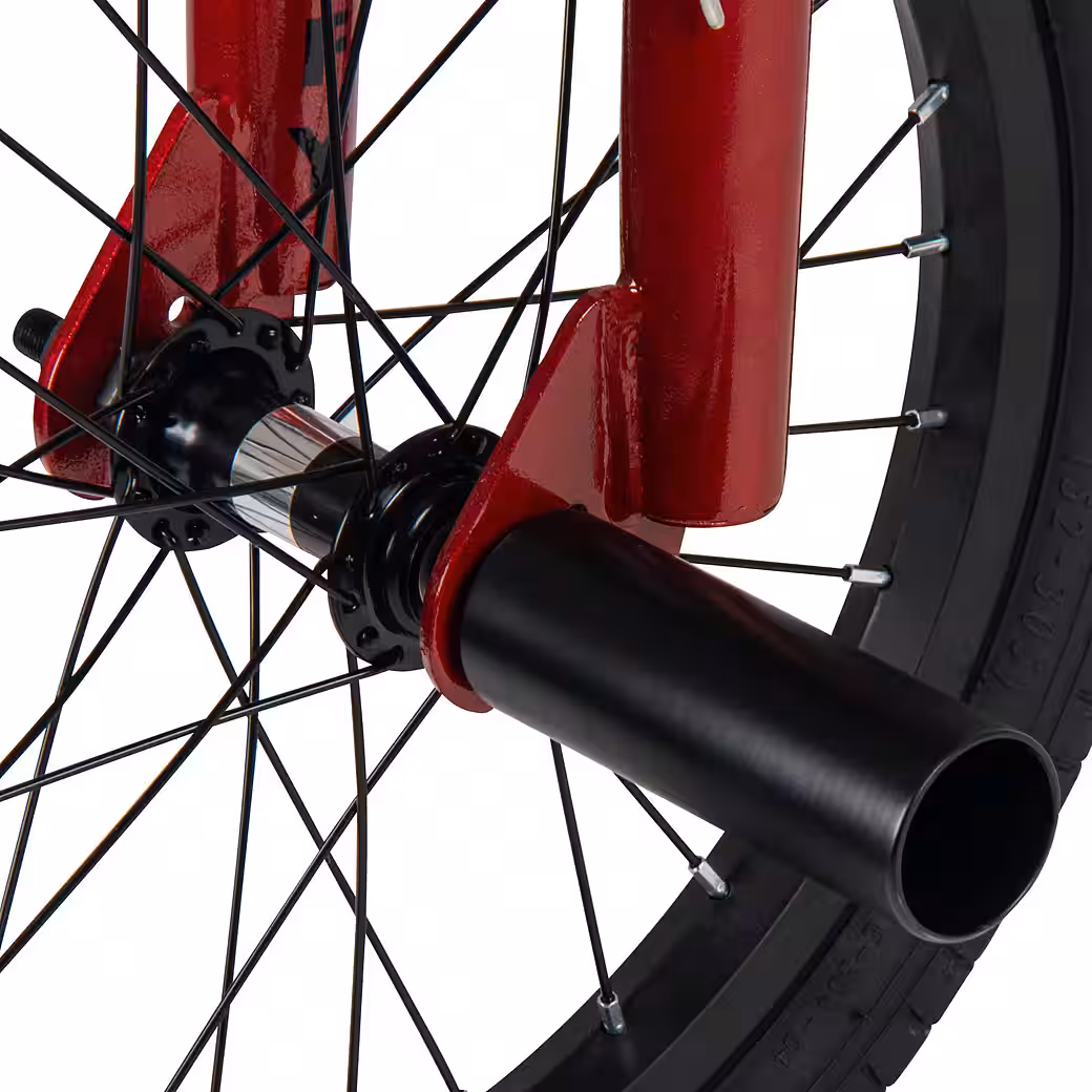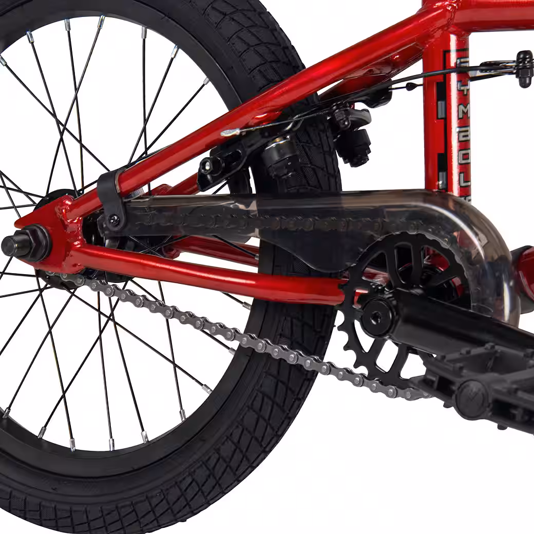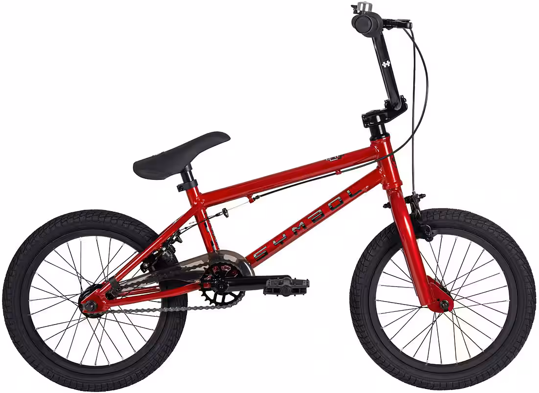 Set your young rider on the right path to the world of freestyle with the Symbol 16” BMX! Painted in a striking Candy Red, this is the perfect first bike for budding pros. Built on a robust steel frame with pro-level geometry, this BMX is durable enough for learning the basics and practicing first tricks.