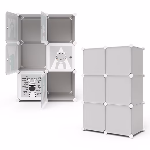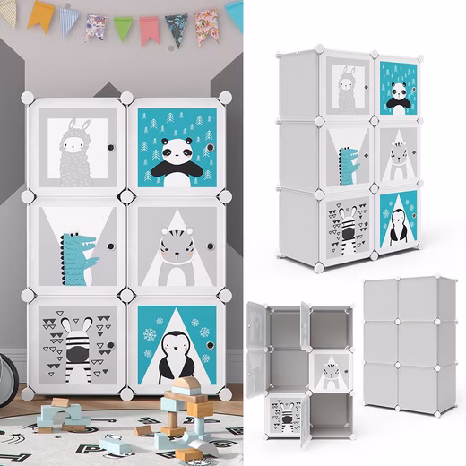 - The children’s wardrobe offers a practical design with a clothes rack and 6 shelves.
