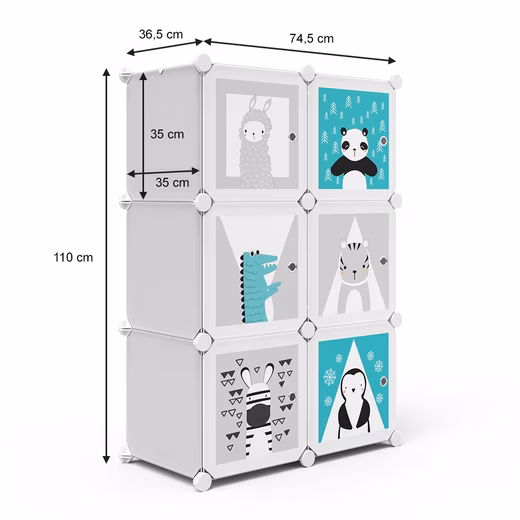 - DIMENSIONS: The Modular Children’s Wardrobe has a width of 74 cm, a height of 110 cm and a depth of 36 cm. All detailed sizes are given in the photos.