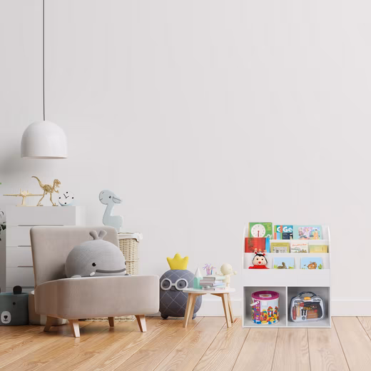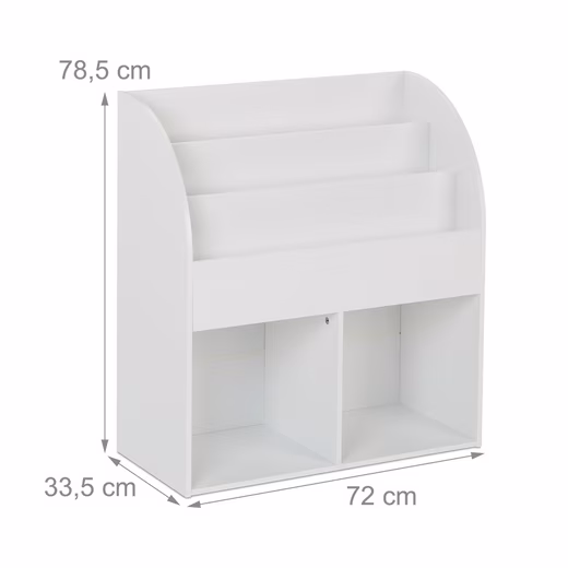 With this children’s bookcase you will delight your little ones! There is room for toys, puzzles and more in the 2 large compartments, while 3 practical shelves offer storage space for books or magazines. The child-friendly height and open design also allow toddlers to choose a book or game on their own, take it from the children’s shelf and put it back later. With its timeless white design, the bookcase fits harmoniously into any children’s room.
