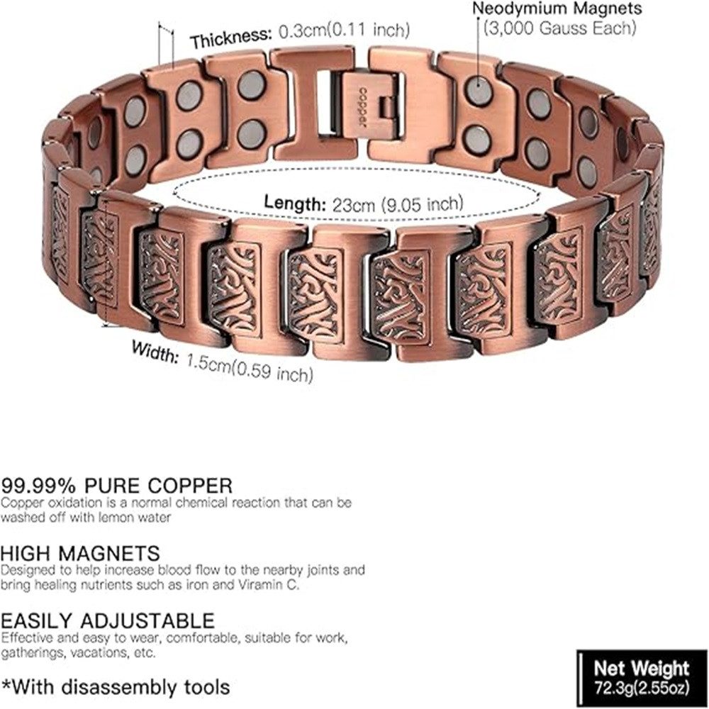 Premium Titanium Steel:Â Crafted from high-quality 316L titanium steel, the magnetic bracelet offers excellent corrosion resistance, is 100% hypoallergenic, and lead and nickel-free. The material is antioxidant, antistatic, and non-dust-attracting. Its durable and high-quality workmanship ensures a comfortable fit and a stylish appearance, perfect for everyday wear.