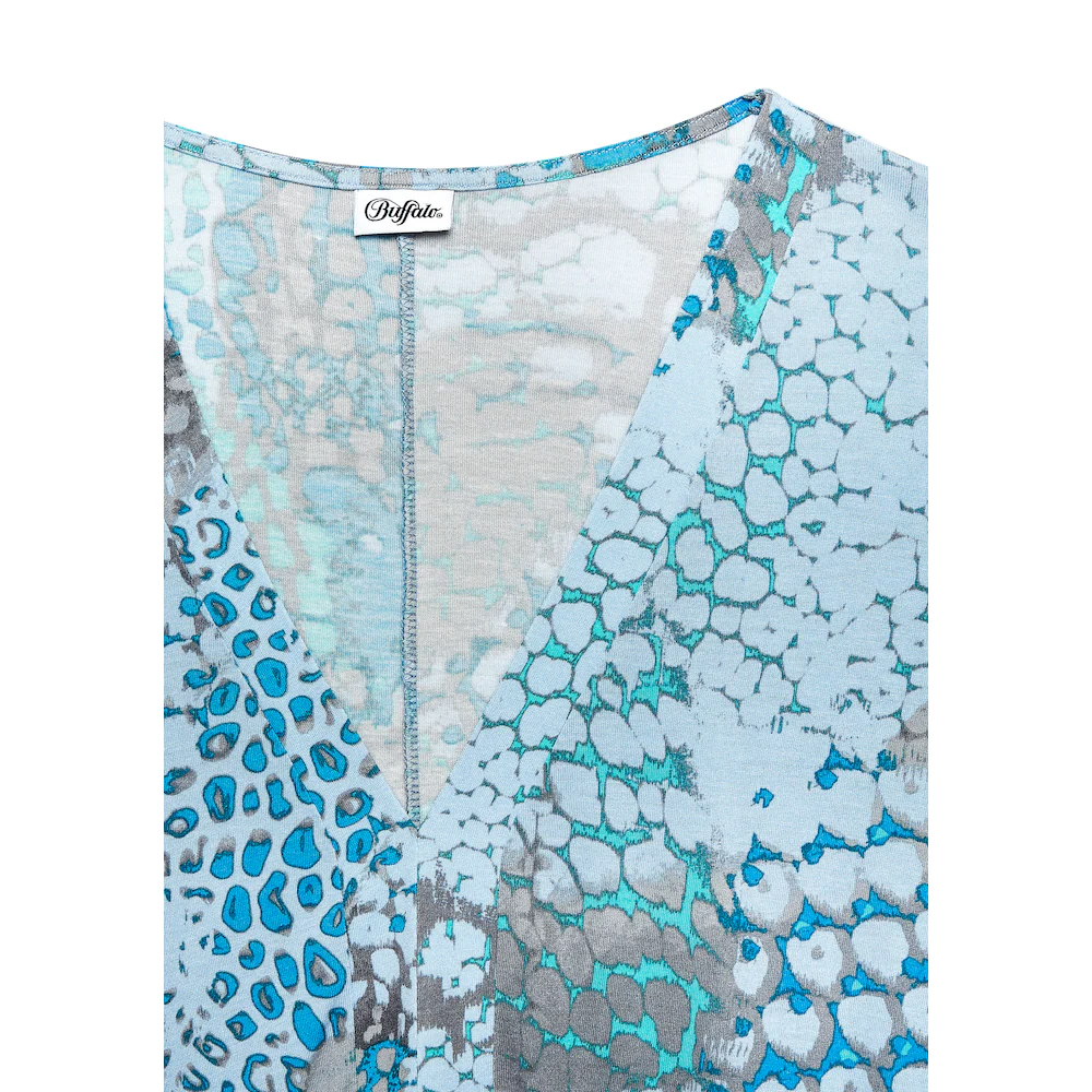With an all-over print: Beach shirt by Buffalo. Deep V-neck with panel. Wide sleeves and wide cuffs. Relaxed fit. Soft viscose fabric.