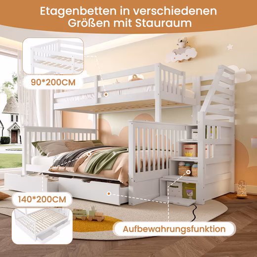 - Internal dimensions of the bed: 90 x 200cm + 140 x 200cm