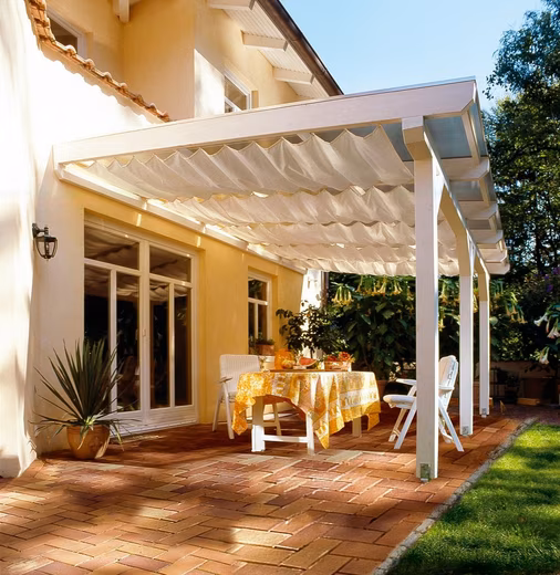 Ideal for patio roofs or conservatories: This 420×140 cm sun sail is the perfect shade provider for existing roofs, pergolas, or other roof structures. It comes complete with a rope tensioning kit and mounting hardware and can be easily attached to various structures. The ivory-colored polyester sun sail offers 95% UV protection, is dirt- and water-repellent, and machine washable at 40°C. Includes: 1 panel.