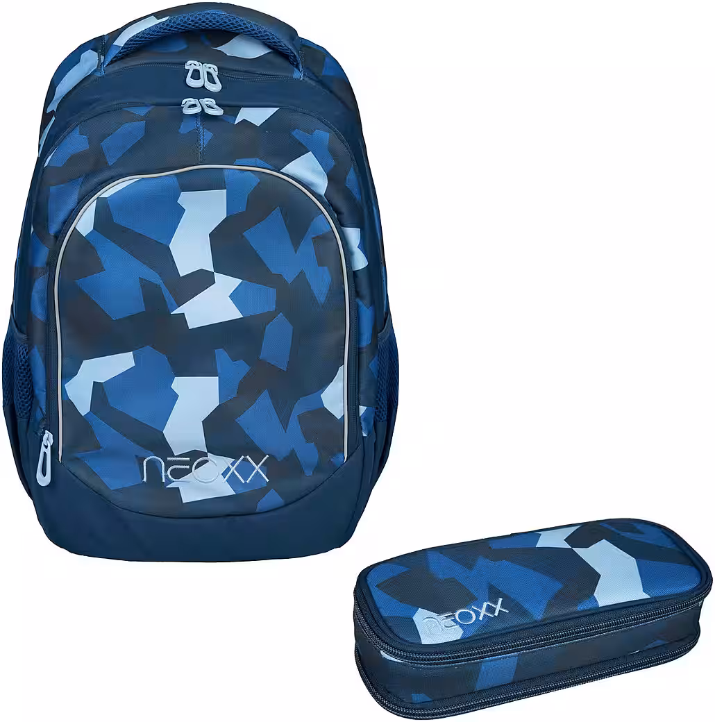 The neoxx school backpack is a practical solution for everyday school life. Made from recycled PET bottles, it contributes to reducing plastic waste. With three compartments, the backpack offers ample space for textbooks, notebooks, and other supplies. It also features two side pockets for securely storing water bottles or snacks. A padded back panel and height-adjustable, padded straps ensure comfortable carrying. This allows the backpack to be individually adjusted for an ergonomic fit. Reflective elements enhance visibility in traffic, ensuring safety in low light. The sturdy base keeps the backpack upright and prevents it from tipping over. With a 27-liter capacity, the backpack offers plenty of storage space without being bulky. Weighing only 600 grams, it’s also exceptionally lightweight, minimizing strain on the child’s back. Ideal for students who want to be on the go but don’t want to compromise on comfort and functionality. Pencil case with a large main compartment with a zipper, inside with a small zippered pocket and a flap with 5 pen loops. A second zippered compartment with 4 pen loops and a mesh pocket.