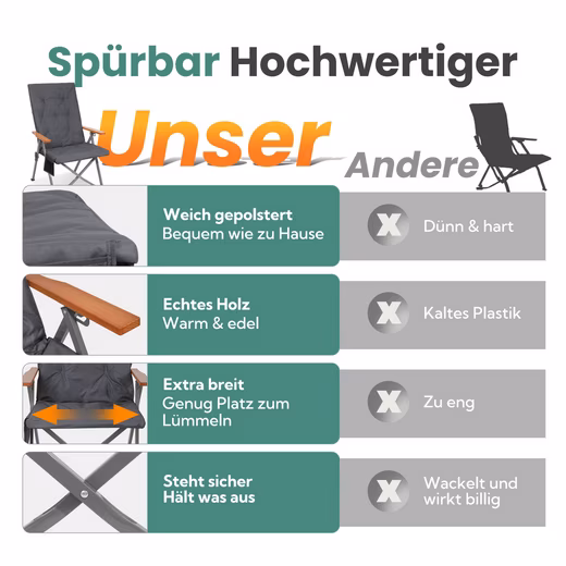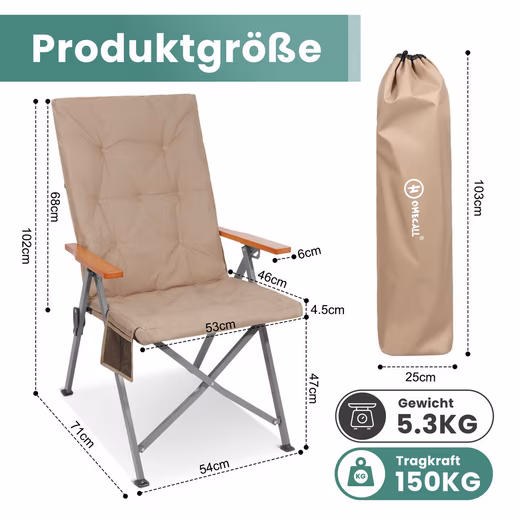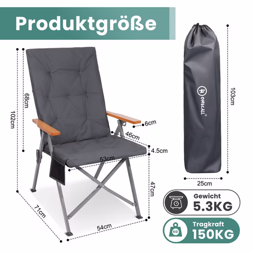 Whether in the countryside, on the balcony or on a fishing trip – this folding camping chair is your reliable companion. As a garden chair high-back, camping folding chair, or fishing chair foldable, it offers exactly the comfort you need outside.