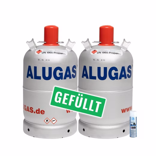 The 2x 11kg aluminum propane gas cylinders including leak detection spray are the ideal solution for your camping and outdoor gas needs. These high-quality, lightweight aluminum gas cylinders offer a convenient and reliable way to fuel your camping equipment.