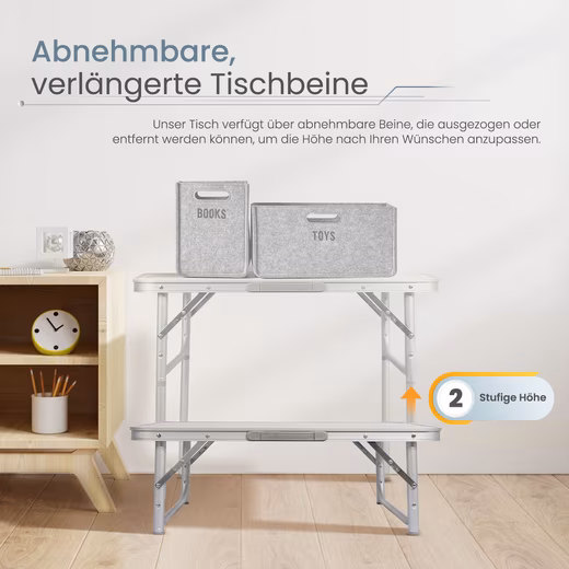 Height Adjustable: The height of the picnic table can be adjusted by screwing the legs on and off in two stages, so that your daily needs are fully met. There are clips under the tabletop to accommodate the legs.