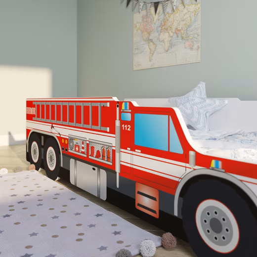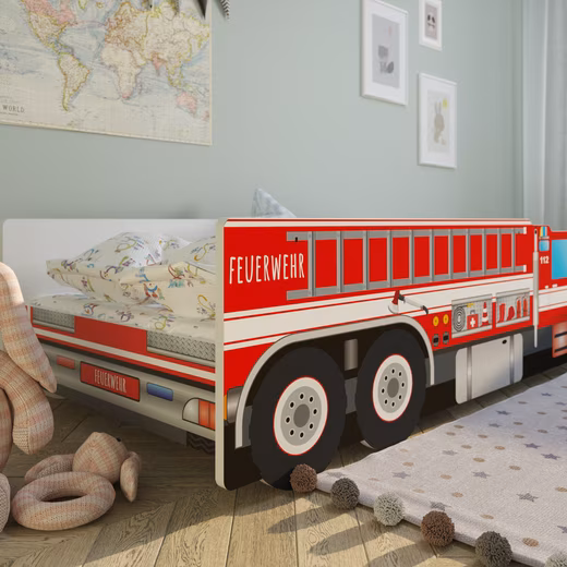 This fire truck bed will make any child’s heart beat faster. Made from high-quality MDF, it’s produced by a small family business in the European Union. The side panels also act as guardrails, ensuring your child’s safety even during wild rides or deep dreams. The low frame makes it easy for little ones to climb in and out independently. It can support up to 120 kg, so parents can occasionally join in too. A sturdy roll-out slatted base is included.