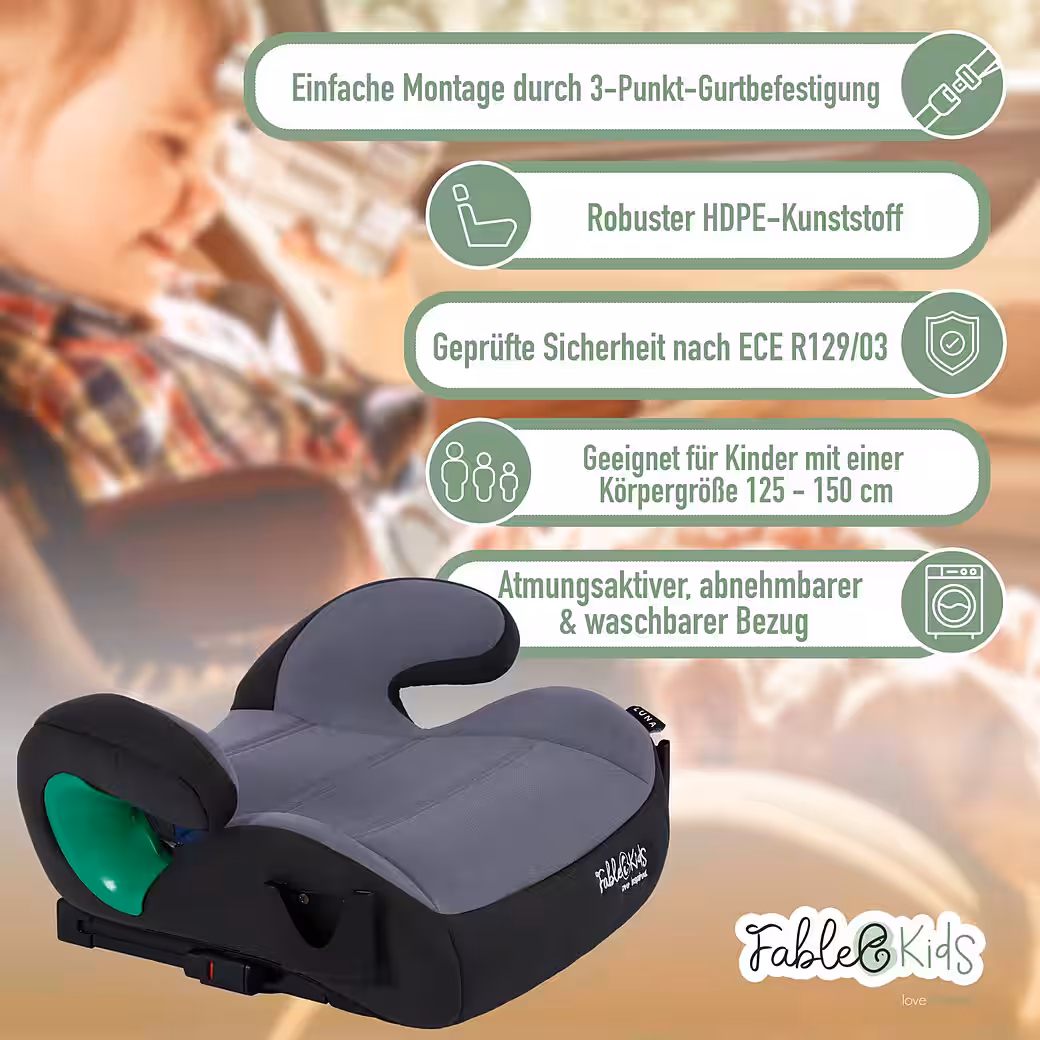 Safe & comfortable travel – FableKids i-Size LUNA child booster seat with ISOFIX