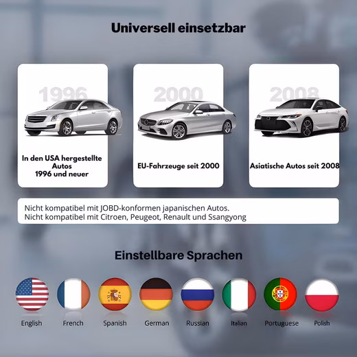 • Universal compatibility – readout of almost all motor vehicles, motorhomes, etc.