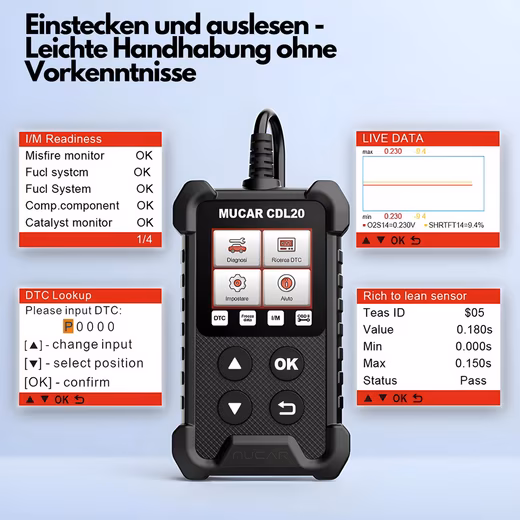 • The device can provide you with the meaning of the error codes directly – no more web research necessary