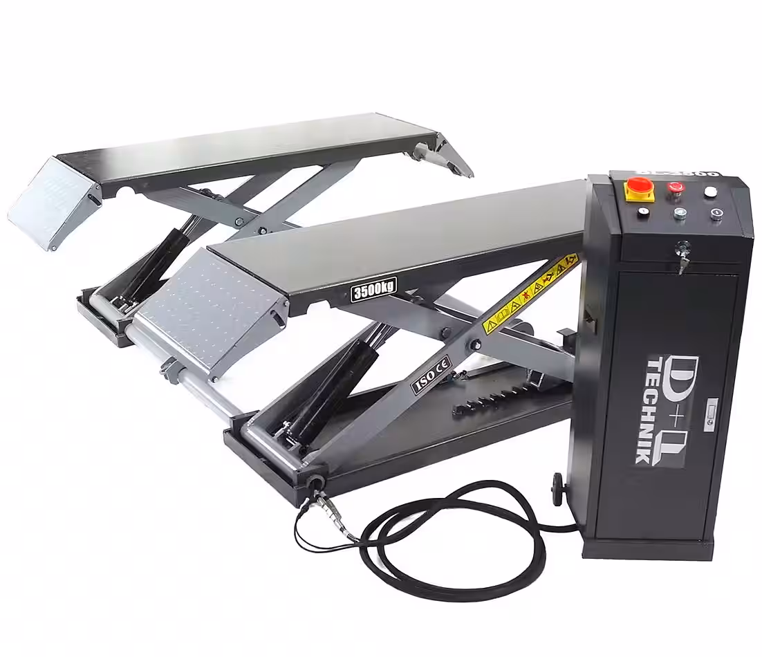- The 3500 kg scissor lift comes with a mobility kit and can therefore be easily moved.