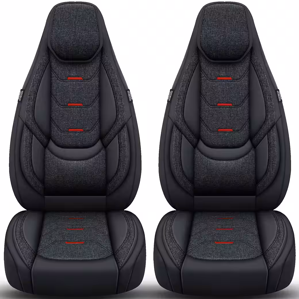 of linen and microfiber velour with foam backing, these seat covers are durable, easy to clean, and breathable, offering comfort and protection on long journeys.