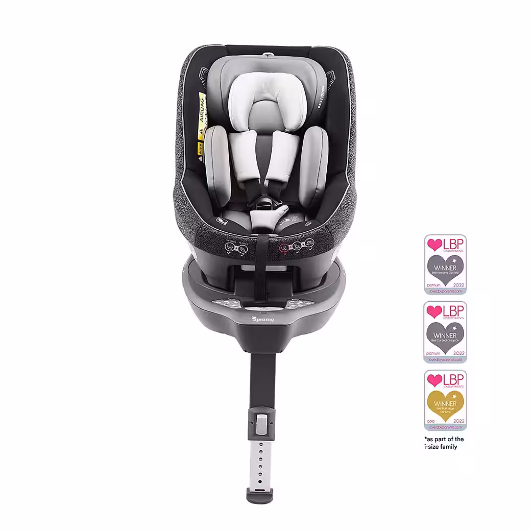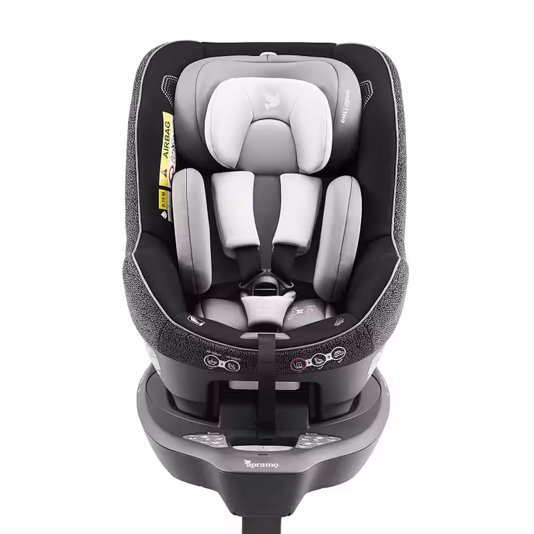 HEIGHT: 40-105 cm AGE: approx. 0-4 years depending on the child. The Apramo modül | two i-Size baby & toddler car seat is easy to use, safe, flexible, and part of the modül | i-Size system. This extended, rear-facing seat is designed around the “U” shape, providing security and peace of mind so you can make the most of those first journeys. Easy to get in and out of, with multiple recline angles, the modül | two can be quickly switched between vehicles with a single click. * With Tri integral SIP, 360° RSR, and a 5-point harness, it’s safe in multiple ways… and sustainably inspired! The Apramo modül | hub-fix ISOFIX swivel base is simply magical. Cleverly designed for use with the Apramo modül | one i-Size newborn & infant carrier and the modul | two i-Size car seat, all with easy ISOFIX installation. It is the beating heart and soul of this surprising modül | i-Size system. The innovative design is completed with the front support leg and ISOFIX connectivity. The 360° RSR technology ensures a more secure structure and allows for easy entry and exit with a clever twist.