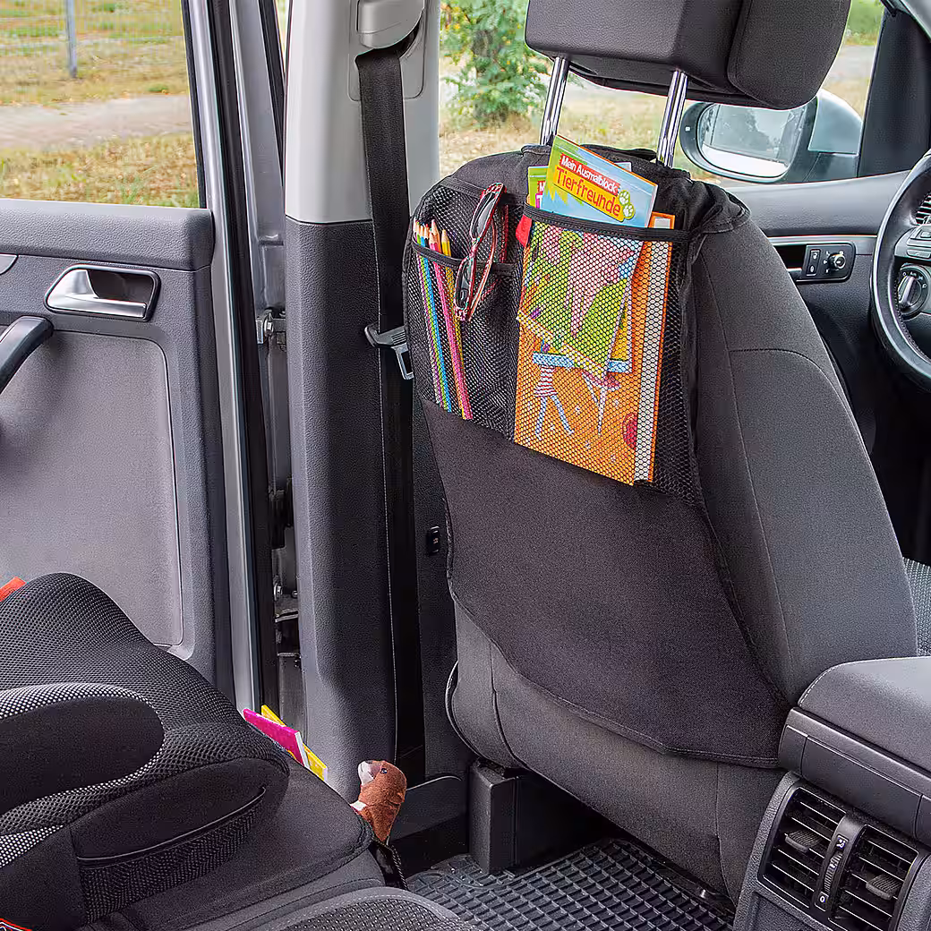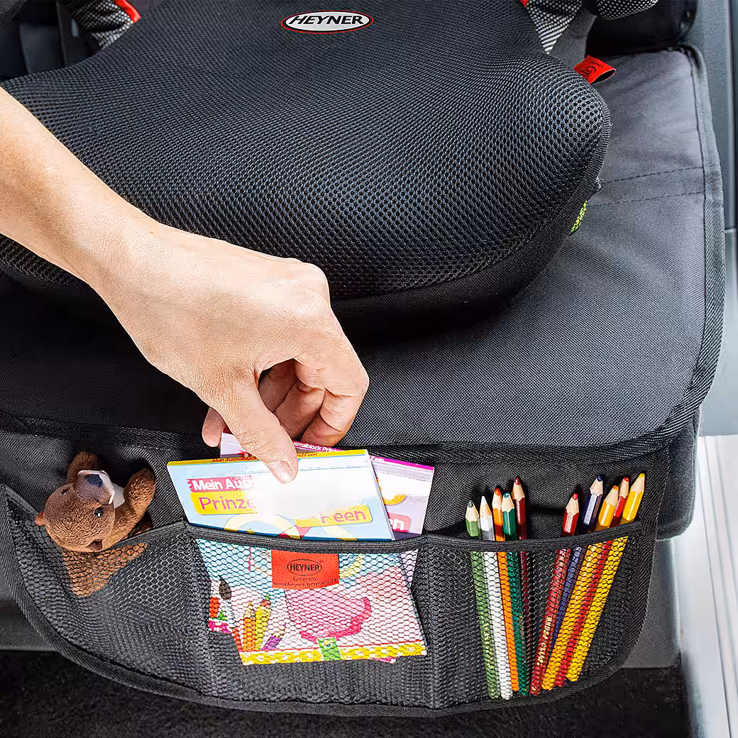 - Practical pockets: With three integrated pockets, the seat protector offers ample space for toys, books and snacks – ideal for long car journeys.