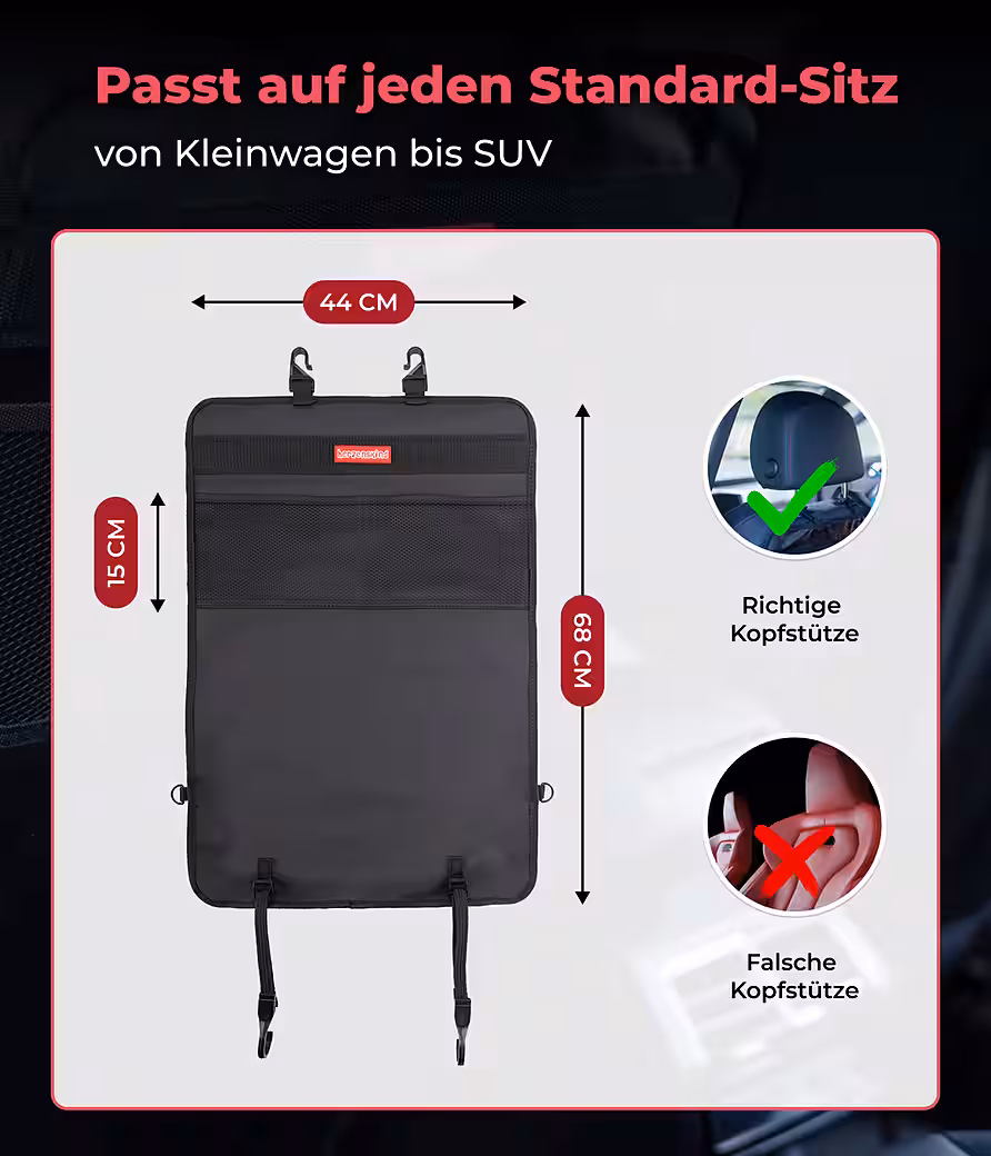 - PRACTICAL DESIGN – Without unnecessary pockets, the backrest protector fits snugly against the seat and does not hang down annoyingly.