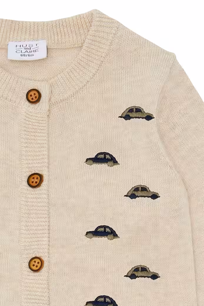 Hust & Claire Cardigan “Charli” for babies and children – Soft knit with car embroidery Discover the enchanting Cardigan “Charli” from Hust & Claire, which combines comfort and stylish design for babies and children. This high-quality knitting cardigan is made from a soft mix of materials that provides pleasant warmth without overheating. The subtle, embroidered car pattern gives the top a playful touch and makes it the ideal companion for little car fans. Whether for everyday life, kindergarten or special occasions – this cardigan always fits, the neutral colors can be easily combined with other items of clothing, while the soft knitted structure ensures a comfortable fit. • Material: High quality, soft knit quality – gentle on the skin and comfortable to wear. • Design: Classic cut with button placket and loving car embroidery. • Fit: Comfortable fit with ribbed cuffs for optimal fit. • Versatility: Perfectly combined with jeans, pants or leggings for a cute look. • Easy to care for: Washing machine resistant and durable. Give your child’s outfit a special charm with the Hust & Claire “Charli” cardigan. Perfect for the transition period or as an additional shift on cooler days. Perfect for every occasion!