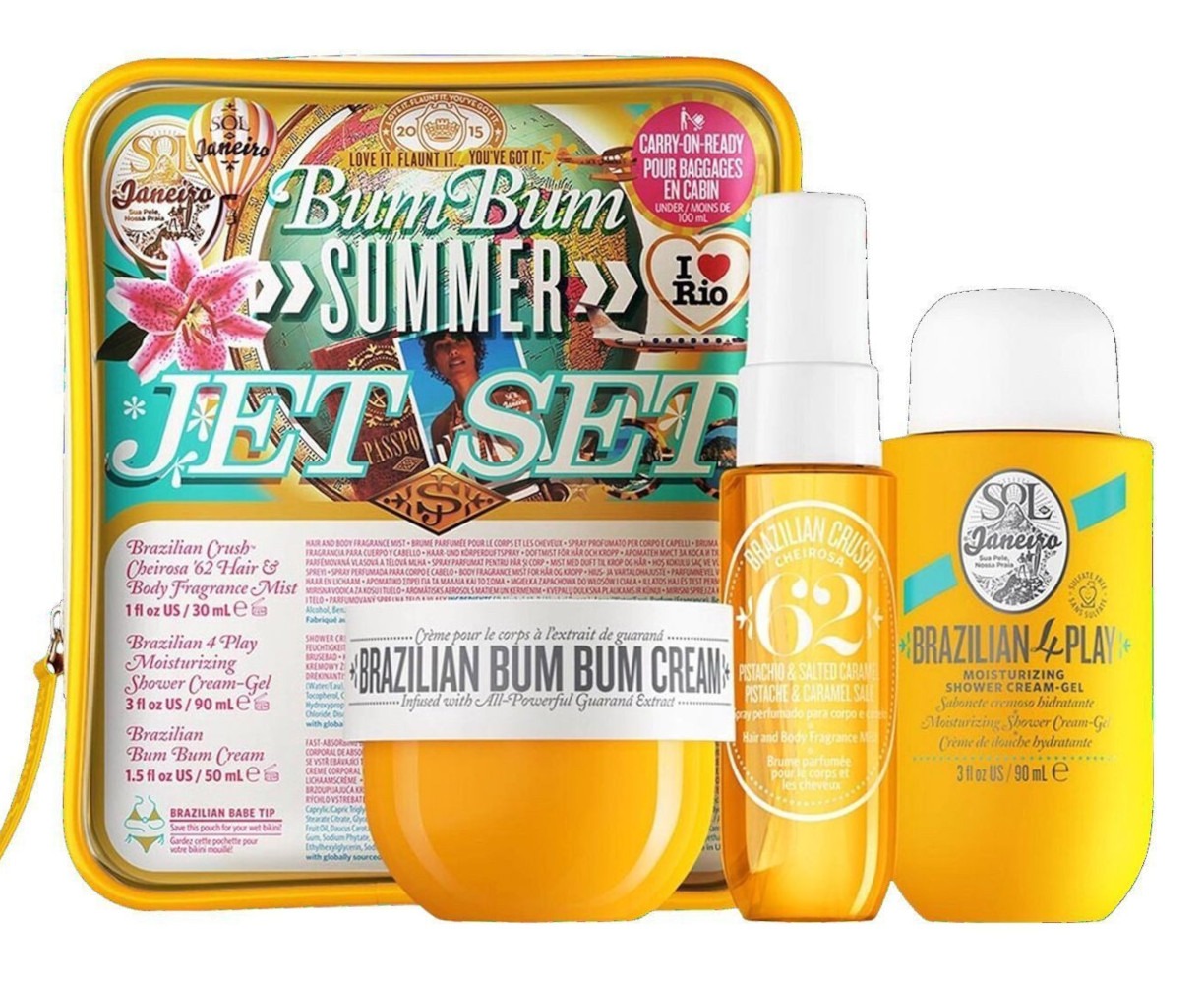 The Bum Bum Jet Set by Sol de Janeiro is ideal for traveling or as a gift. It offers a sensual skin care experience and provides a radiantly soft skin, enveloped by a seductive scent.