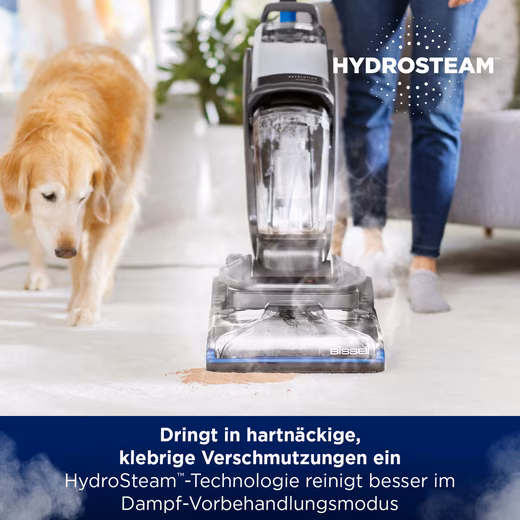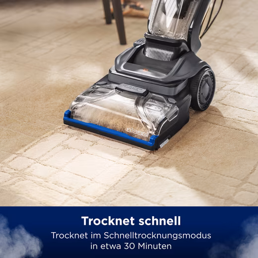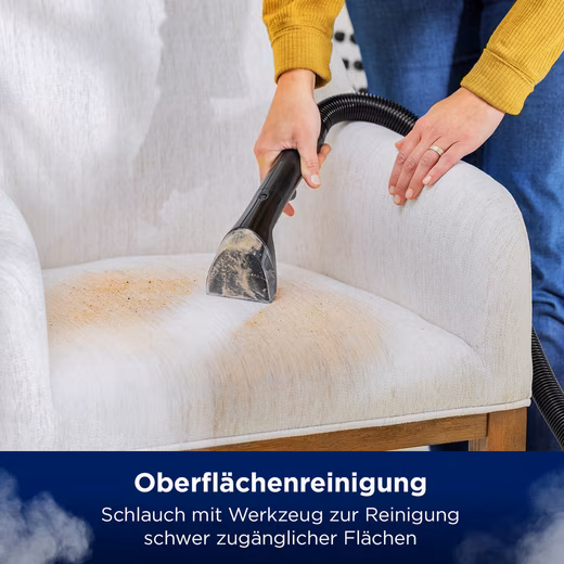 The BISSELL® Revolution™ HydroSteam™ upright carpet and upholstery cleaner is designed to better remove stubborn, deep-seated stains, sticky dirt and stubborn dirt from carpets and carpets thanks to the power of HydroSteam™ technology. When used in steam pre-treatment mode or SteamWash™ Max Clean mode, a combination of steam, water and specially formulated BISSELL® cleaning solution penetrates deep into the fabric, and the powerful rubbing of two Dirtlifter power brushes and 1300W suction pulls the dirt directly into the dirty water tank, permanently removing it. A dedicated quick-drying mode cleans and refreshes your carpets and carpets, leaving them drying in just 30 minutes.* For cleaning hard-to-reach surfaces such as upholstered furniture, there’s the option to attach the included hose with a Tough Stain Tool. Thanks to the two easy to fill, remove and clean tanks for clean and dirty water, you will always clean your carpets with fresh water. Side sweeping brushes ensure that you always clean efficiently along the baseboards and around furniture.