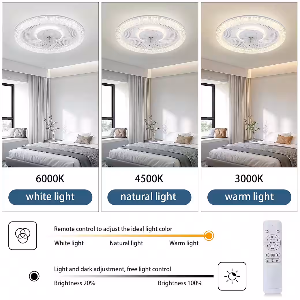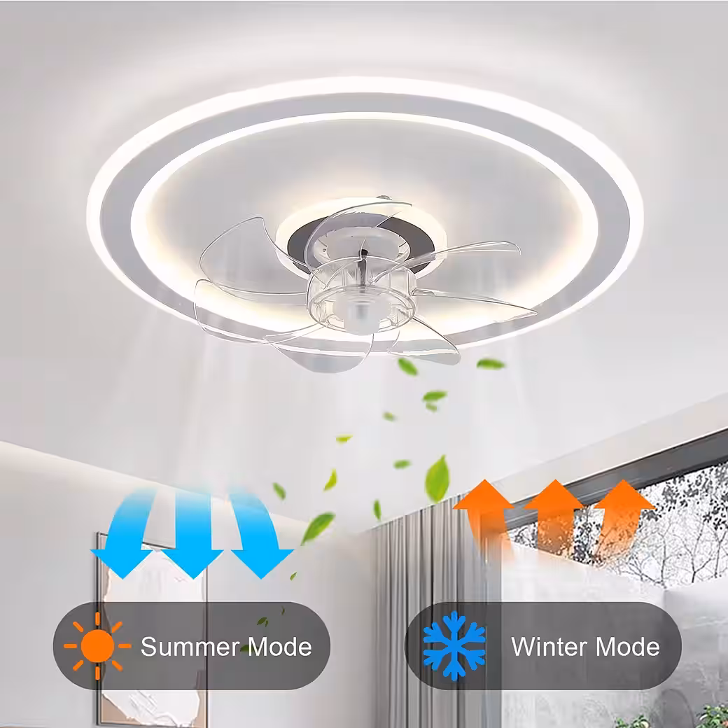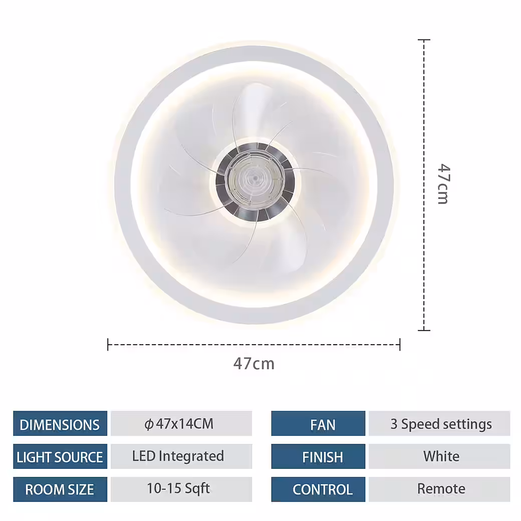 2-in-1 Design: This modern, flat ceiling fan with light saves space while adding a stylish touch to your room. The flush-mounted fan is equipped with a whisper-quiet DC motor, making it perfect for small, low-profile spaces like bedrooms, living rooms, and kitchens. Three Lighting Modes: The LED ceiling fan light offers three lighting modes: cool white, natural white, and warm white. The brightness can be adjusted from 5% to 100%, and the color temperature ranges from 3000K to 6500K. You can use the remote control to adjust the lights to suit your needs. Three Adjustable Wind Speeds: This fan light has three wind speed settings: low, medium, and high. Low provides a quiet and gentle breeze, medium offers a pleasant natural breeze, and high provides a powerful, cool breeze. The LED ceiling fan blades rotate in both directions to enhance air circulation. Creative Design: This modern and unique fan light combines the creative design of a ceiling light and a fan to bring light and coolness to the room. The fan lights are energy-saving, quiet, and durable, and are as easy to install as ceiling lights. Size: 47 cm. Wide Range of Applications: The light and fan are independent functions that can be operated simultaneously or separately to meet your needs in various situations. Suitable for living rooms, bedrooms, children’s rooms, guest rooms, studies, dining rooms, and other settings.