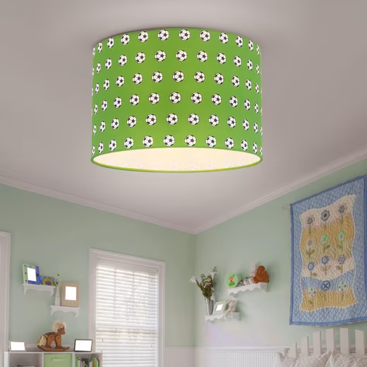 - DESIGN: The design of this ceiling lamp is characterized by the green coloring of the lampshade and the football pattern on it.
