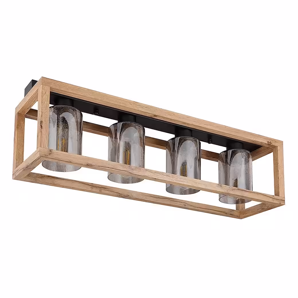 The 22.5 cm ceiling light consists of an MDF frame fitted with four smoky glass shades. These can be fitted with E27 bulbs of your choice, allowing you to individually adjust the light color and brightness. Other models from the same series allow you to create a stylish ambiance in your home.
